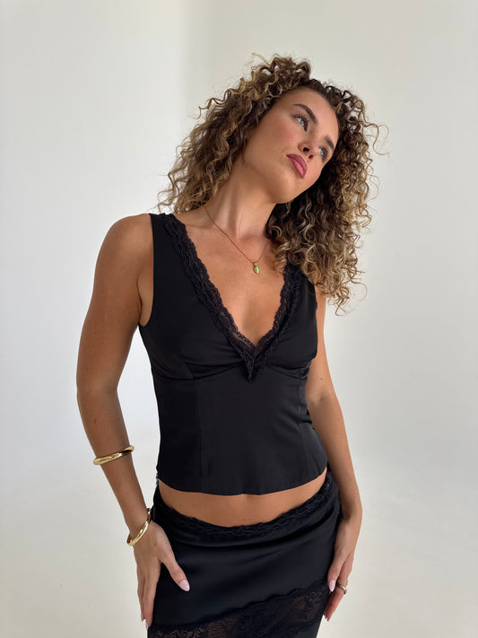 Angel Lace Trim Top - Black