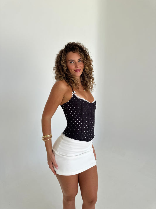 Eclipse Lace Trim Bustier - Black & White Polka Dot