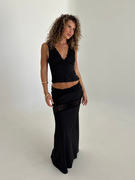 Angel Lace Trim Maxi Skirt - Black